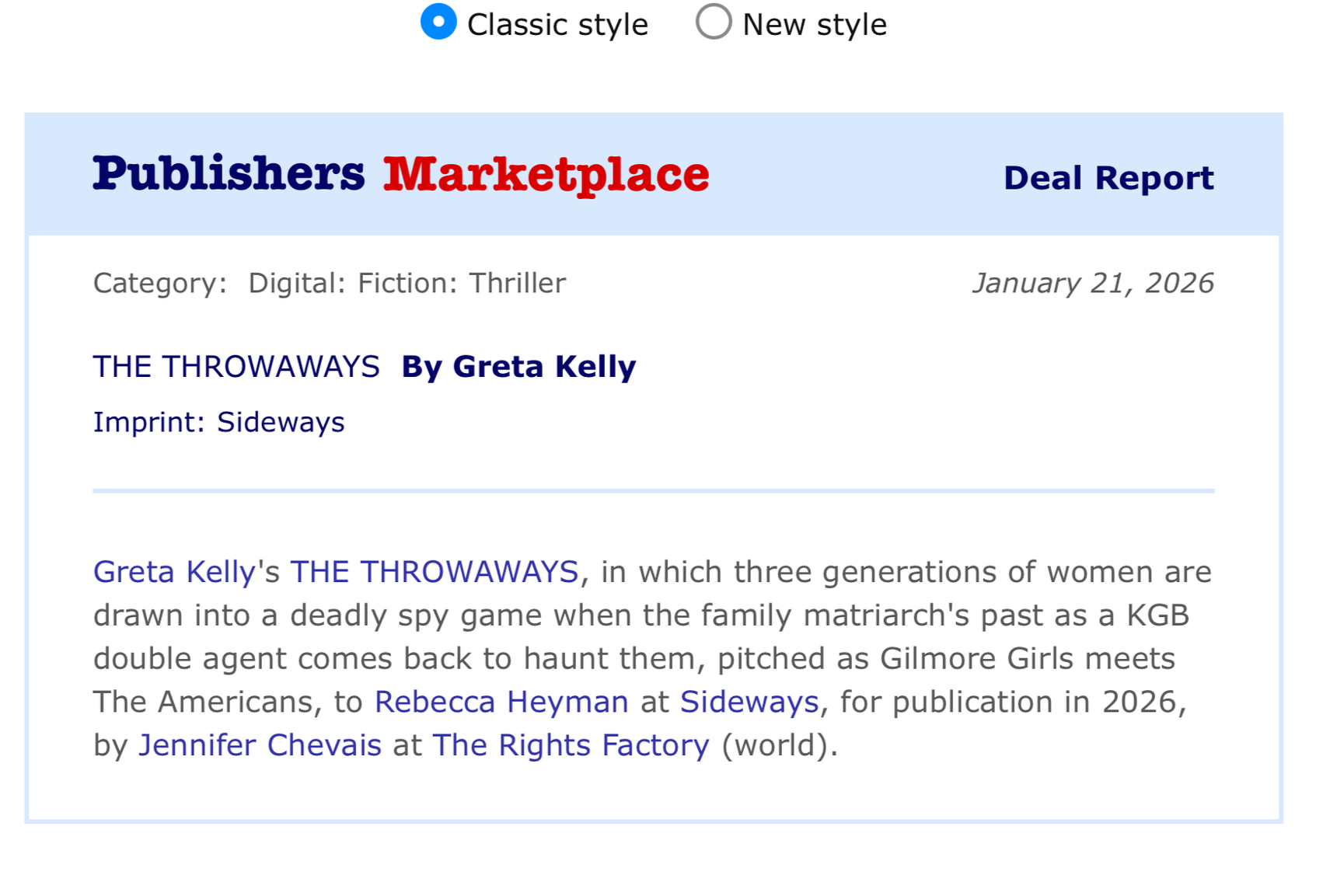 Gilmore Girls meets The American’s in this page turning romp about a family on the run!